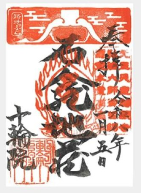 当山の限定御朱印は、国宝本堂柱間の上にある「蟇股(かえるまた)」をモチーフにしています。蟇股とは荷重を分散して支えるための建築部材で、十輪院蟇股は鎌倉時代特有の垢抜けした優美な形状が特徴的です。