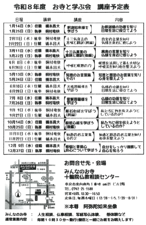 【場所】みんなのお寺 十輪院仏教相談センター(東向き商店街 旧南都銀行本店向かいのビル2階)