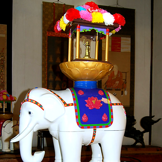 2.骨粉砕装置(白象)花御堂の中には釈迦誕生仏