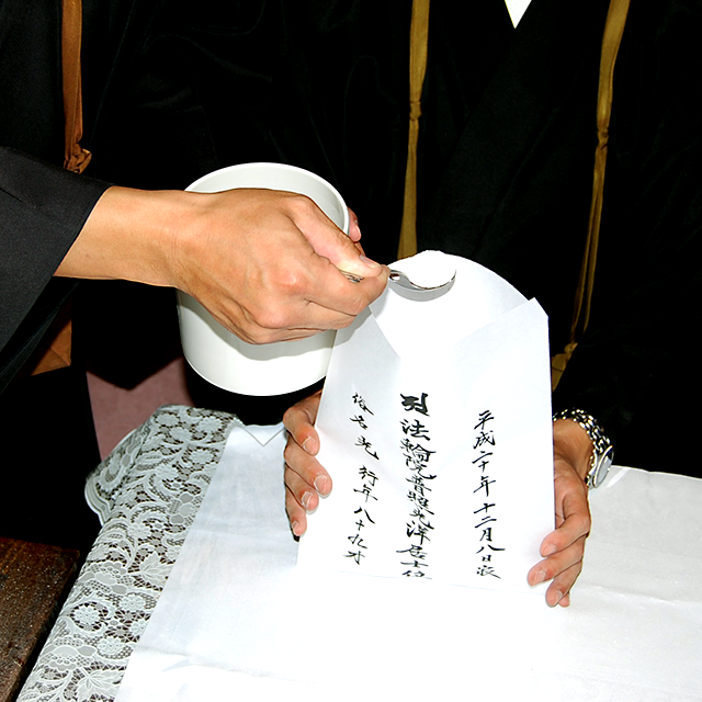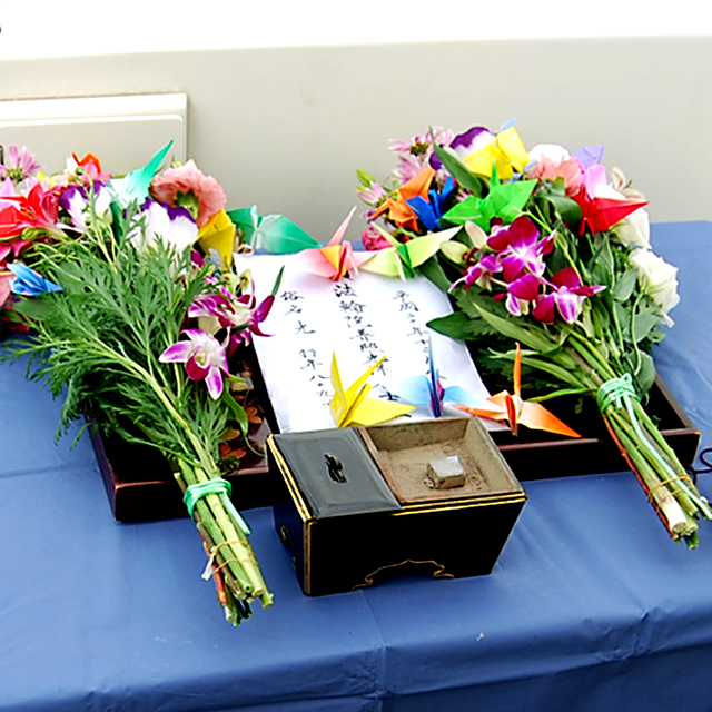 9.遺骨に花を添えます。