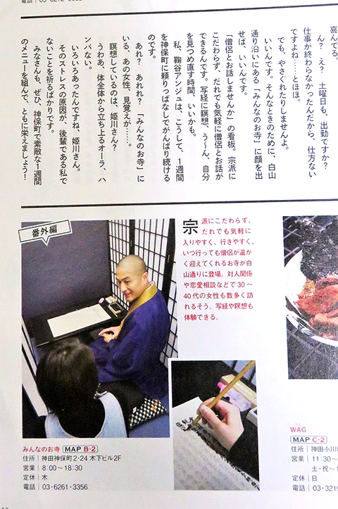 東京みんなのお寺がタウン誌に掲載されました。神田古書店連盟が10月に発行した「JINBOCHO」第6号で、神保町公式ガイドと銘打ってます。みんなのお寺の説明文を紹介します。