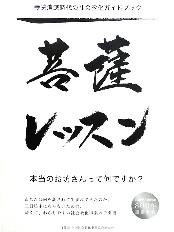 『菩薩レッスン』は、全国にある日蓮宗末寺に対して発行されたもので、「寺院消滅時代の社会教化ガイドブック」という深刻なサブタイトルになっています。このような時代に、当山の活動が注目されることは嬉しいことですが、全国の寺院が時代に添った存在になることを祈っています。