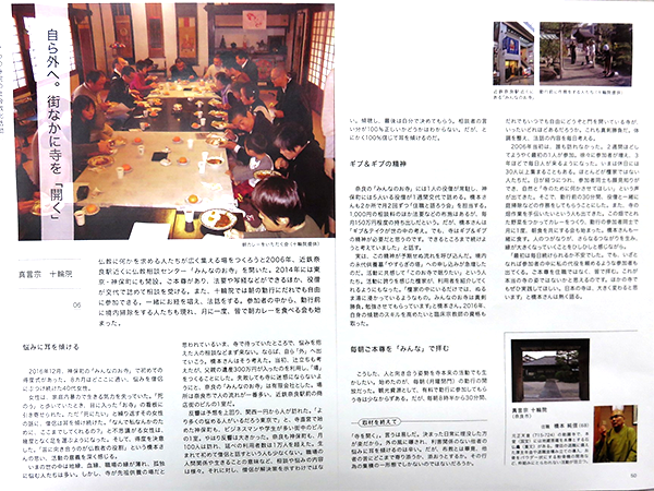 最近、寺院関係の雑誌2誌に当山の活動が紹介されました。日蓮宗全国社会教化事業協会連合会発行『菩薩レッスン』と大正大学出版会発行『地域寺院』第12号です。いずれも寺院活性化のガイドブックのようなもので、混迷を極める現在の全国寺院への提案書です。『地域寺院第』は、昨年から発行された新しい雑誌で、「寺院のこれからの在り方を考える」というサブタイトルが付されています。