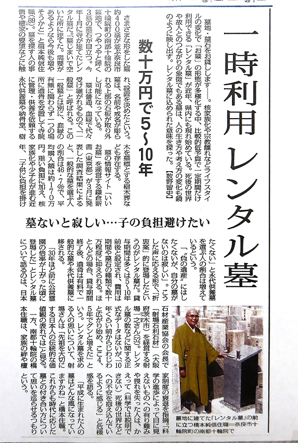 平成30年3月27日付けの毎日新聞(奈良版)に奈良のみんなのお寺が紹介されました。